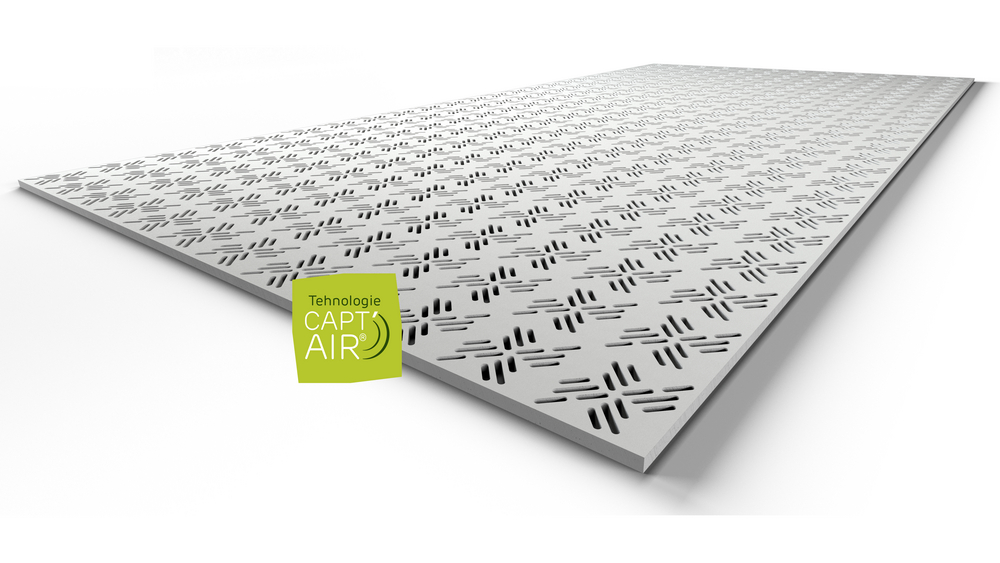 Placile perforate din gama Createx contin solutii cu tehnologia CAPT'AIR pentru imbunatatirea calitatii aerului interior, tehnologie ce permite absortia formaldehidelor din aer si le transforma in compusi neutri, inerti, impiedicand reemisia lor in aer.