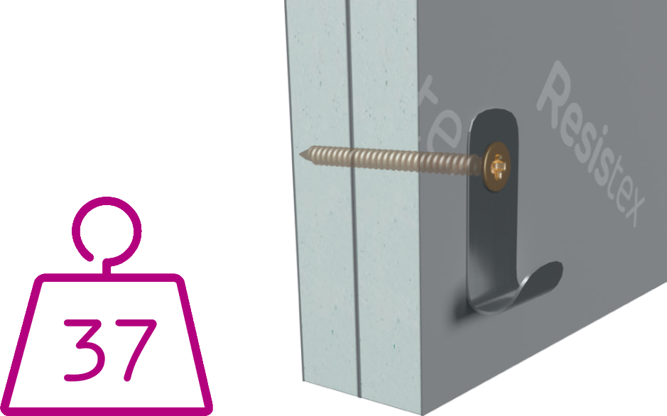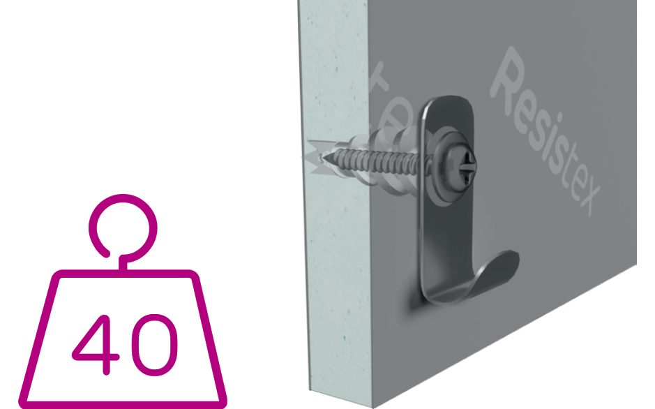 Cu Resistex poţi suspenda până la 75 kg/prindere pe un perete din gips-carton. Instalarea și ancorarea greutăţilor nu a fost niciodată atât de simplă și sigură.