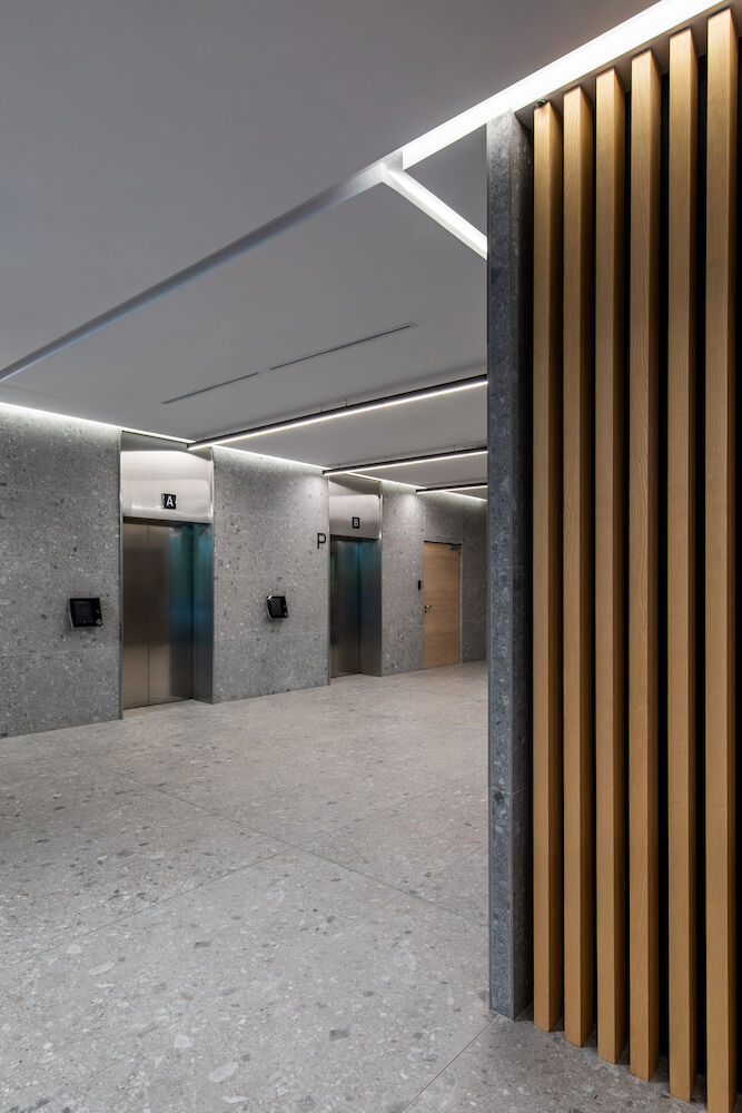 În proiectul de amenajare a compartimentărilor, Siniat a pus la dispoziție o gamă largă de sisteme de gips-carton cu sau fără rezistență la acțiunea focului și cu diferite proprietăți acustice. De la pereți de compartimentare clasici la plafoane ornamentale și placări speciale cu rezistență la acțiunea focului EI 180’.
